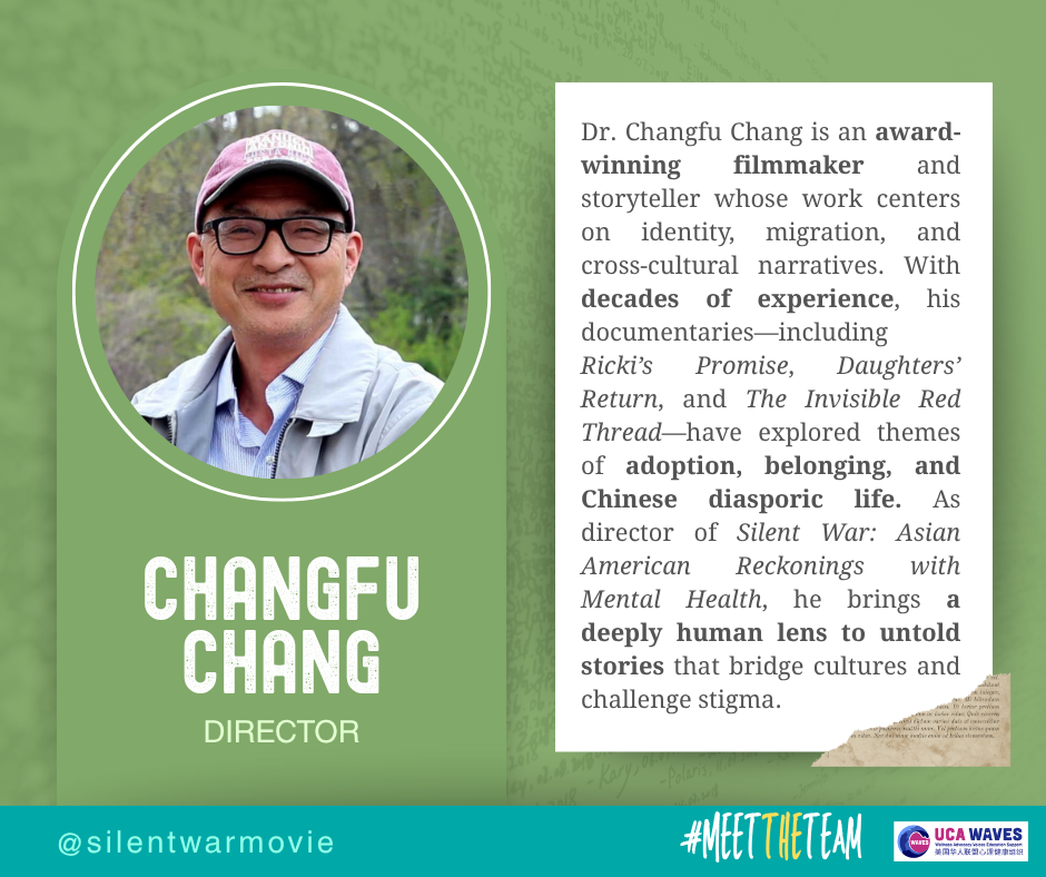 Dr. Changfu Chang is the writer and director of Silent War: Asian American Reckonings with Mental Health. Since 2021, he has been at the heart of this project—traveling across the country, conducting nearly every interview himself, and listening to stories that are rarely told but urgently needed.